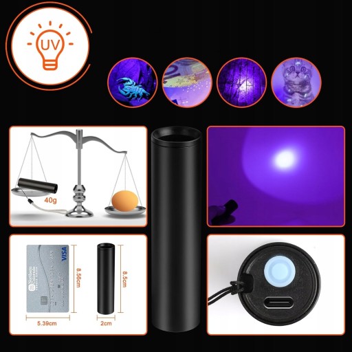 - ✅MINI UV KIESZONKOWA LATARKA ŁADOWALNA: Ten zestaw latarek ma nowe i ulepszone akcesorium - latarkę z czarnym światłem z aluminiową obudową, która waży 40 gramów dla lekkości i wygody. Można nią sprawdzać plamy z moczu zwierząt domowych, plamy w łazience, fluorescencyjne tkaniny, luminofory kosmetyczne, portfele, paszporty, dowody osobiste, prawa jazdy i inne. Mini latarka UV z możliwością ładowania jest idealna do toreb, plecaków i torebek. Bardzo praktyczny gadżet!