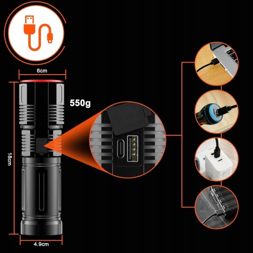 ⭐️BARDZO JASNA LATARKA TAKTYCZNA LED 50000lm WODOODPORNA USB⭐️