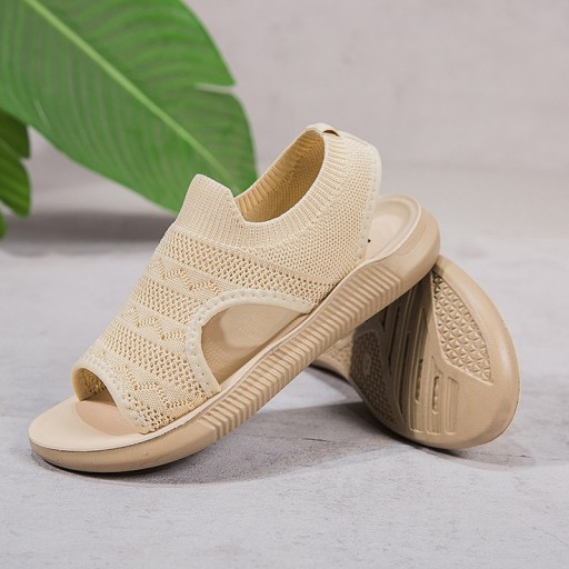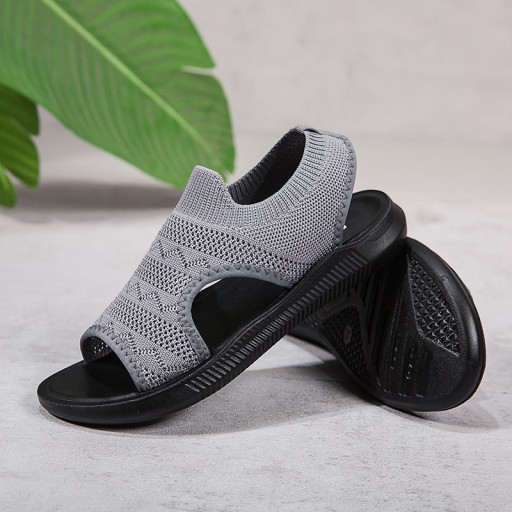 Damskie sandały na grubej podeszwie z rozciągliwej siateczki dopasowującej się do stopy.