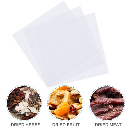 Arkusze odwadniacza są zaprojektowane z siatką do szybkiego suszenia żywności. Po prostu umieść jeden arkusz na każdej z tac suszarki, zanim zaczniesz odwadniać żywność, a czyszczenie będzie tak proste, jak przepłukanie każdego arkusza ciepłej wody z mydłem. Nigdy więcej szorowania!