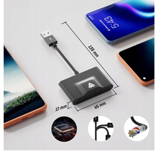 Uwaga! Adapter nie dodaje funkcjonalności Android Auto w aucie, które tego systemu nie posiada. Umożliwia jedynie bezprzewodowe połączenie zamiast przewodowego w samochodach wyposażonych w Android Auto.