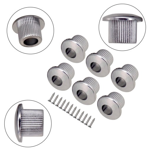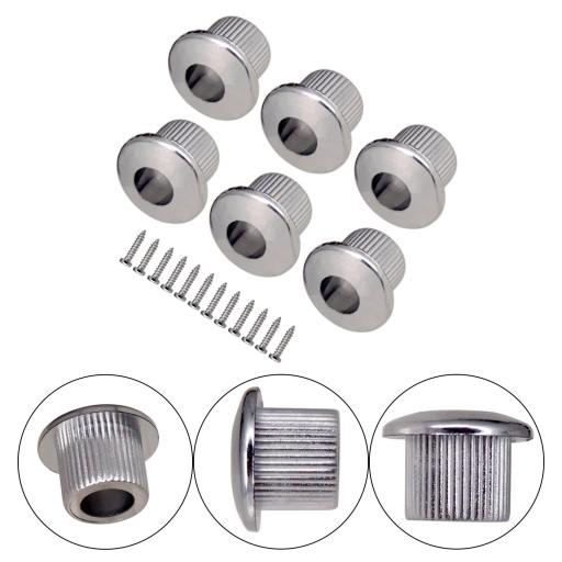 6x Chromowane tuleje do tunerów gitarowych ze śrubami do tunerów gitarowych półzamkniętych, srebrne