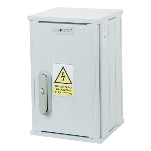 Rozdzielnica hermetyczna w obudowie z fundamentem . Gniazda 3x230V Siła 32A i 16A . Zabezpieczenia 1x C32A 3F + 1x C16A 1F