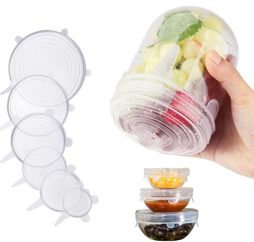 Uniwersalne silikonowe pokrywki, rozciągliwe. Mix kolor 6szt w zestawie