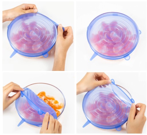 КРЫШКИ ПИЩЕВЫЕ СИЛИКОНОВЫЕ УНИВЕРСАЛЬНЫЕ РАСТЯЖИВАЮЩИЕСЯ 6 ШТ. ДЛЯ БАНОК И МИСШЕК