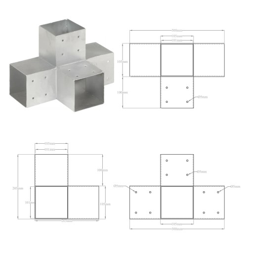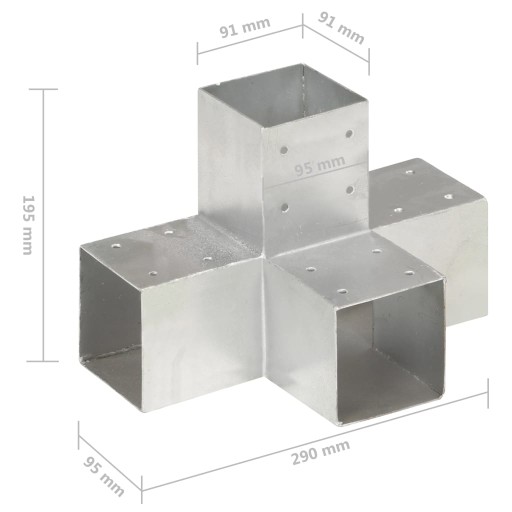 Elektrogalwanizowany łącznik umożliwia łatwe łączenie i stabilizację belek. Wszystkie łączniki mają fabrycznie nawiercone otwory. Łącznik ten jest przeznaczony do 4 kwadratowych belek drewnianych o grubości 91 mm.