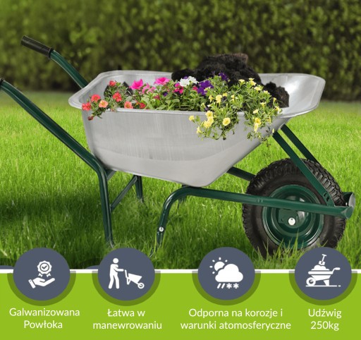 gwarantuje nie tylko trwałość, ale także możliwość załadunku aż do 250 kg! Stabilność toru jazdy i doskonała zwrotność są zapewnione dzięki pneumatycznej oponie. To nie tylko taczka - to solidny sprzęt dostępny tylko u nas!