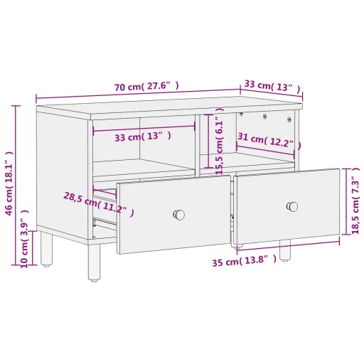 Szafka pod telewizor, czarna, 70x33x46 cm, lite drewno mango