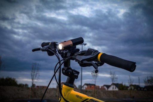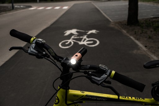 Innowacyjna głowica wykonana w całości z przeźroczystego materiału sprawia że lampka ma bardzo szeroki kot świecenia. Światło załamuje się w krawędziach głowicy pozwala na oświetlenie powierzchni tuz przed kołem lub skupić światło w dal.