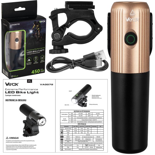 ВЕЛОСИПЕДНЫЕ ФАРЫ ПЕРЕДНИЕ СВЕТОДИОДНЫЕ ВЕЛОСИПЕДНЫЕ ФАРЫ USB-C PRO METAL IPX6 VAYOX