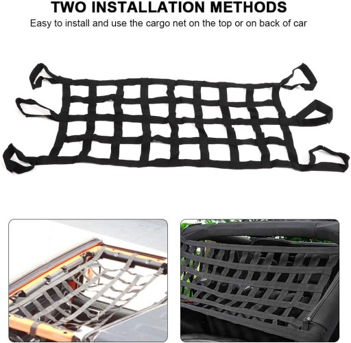 5. Dwie metody instalacji, łatwo jest zainstalować i używać siatki ładunkowej na górze lub z tyłu UTV lub pasującej do Jeepa Wranglera.