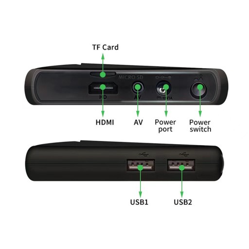 Dziesięć kontrolerów gier posiada 30 000 gier w domyślnym języku: języku angielskim (brak polskiego w tej chwili) Możliwość włożenia karty SD o pojemności do 64 GB i grania w więcej fajnych gier, co pozwala wejść w grę retro z przyjaciółmi.