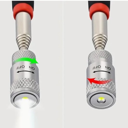Dioda LED na końcu chwytaka zapewnia dodatkowe oświetlenie w ciemnych obszarach, ułatwiając lokalizację poszukiwanych przedmiotów.