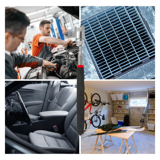 Chwytak teleskopowy umożliwia podnoszenie metalowych przedmiotów w różnych miejscach, a regulowana długość zwiększa jego wszechstronność.