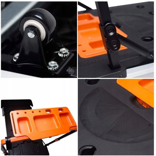 - 7 funkcji w jednym urządzeniu: stół warsztatowy, wózek, rusztowanie, platforma robocza, leżanka warsztatowa, urządzenie jezdne, wózek ręczny