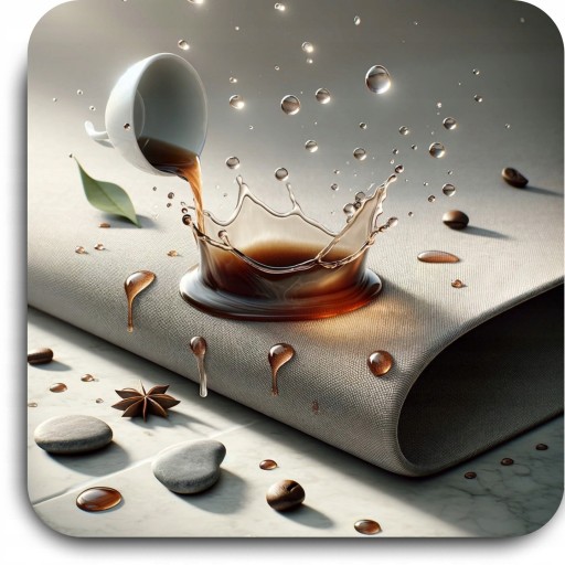 Tkanina została pokryta hydrofobową powłoką, która ogranicza wchłanianie płynów. Dzięki temu rozlane ciecze, takie jak kawa, herbata czy wino, nie wnikają w głąb materiału, lecz skraplają się na jego powierzchni, co pozwala na łatwe i szybkie usunięcie zabrudzeń.
