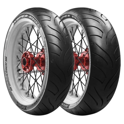 Avon VIPER STRYKE AM63 jest to skuterowa opona szosowa o bardzo agresywnym bieżniku. Dzięki specjalnej mieszance gumy i kierunkowemu bieżnikowi opony te bardzo dobrze zachowują się na suchej jak i mokrej nawierzchni. Dają całkiem niezłe przebiegi.