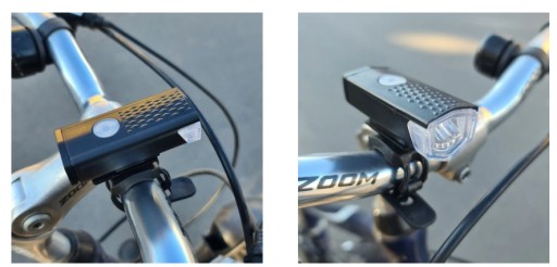 Lampka rowerowa posiada poręczny i praktyczny uchwyt do zamontowania na kierownicy. Jest dostosowany do prostego i szybkiego montażu. Gumowy pasek oraz zapięcie na plastikowy haczyk jest montażem najszybszym z możliwych. Guma rozciąga się, dlatego dostosujesz do każdej średnicy rurki kierownicy. Lampka obraca się o 360° więc można skierować ją w dowolnym kierunku w jakim jest potrzeba.