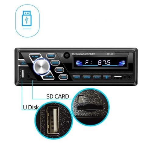 Obsługa odtwarzania z pamięci u-disk i kart sd, wystarczy włożyć pamięć u-disk lub kartę sd do interfejsu urządzenia, aby odtwarzać muzykę.