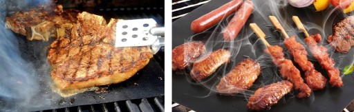 Dużą zaletą jest to, że mata nie przywiera, dzięki czemu bez problemu usmażymy na niej warzywa, jajka, mięso bez konieczności użycia tłuszczu.