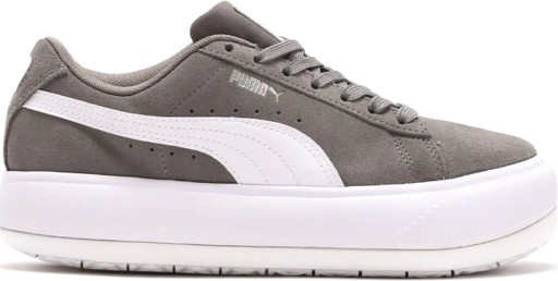 Uzupełnij swój strój modnymi tenisówkami Puma. Buty Suede Mayu to klasyczny krój na podwyższonej platformie. Prezentowany model to gładki szary zamszowy kolor z białym paskiem i logo Puma. Dzięki neutralnemu połączeniu kolorów, zawsze możesz dopasować je do swojego stroju. Oprócz wytrzymałej podeszwy na platformie, buty mają piankową wkładkę zapewniającą dodatkowy komfort.