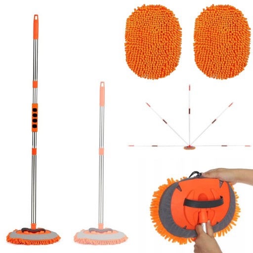 - Zestaw mopa ze szczotką do myjni samochodowej jest wyposażony w wymienną nakładkę z mikrofibry szenilowej wielokrotnego użytku, którą można prać w pralce.