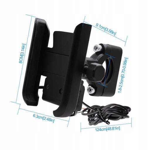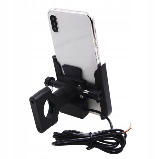 Motorcycle Handlebar Aluminum USB GPS Mobile Phone Charging Holder - Black