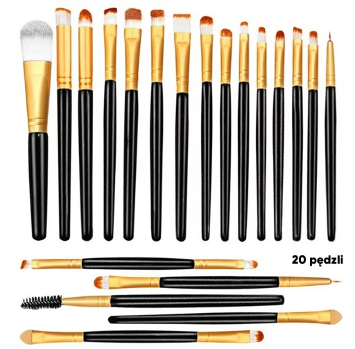 Zestaw profesjonalnych pędzli do makijażu - 20 sztuk