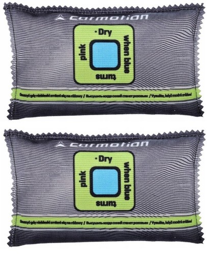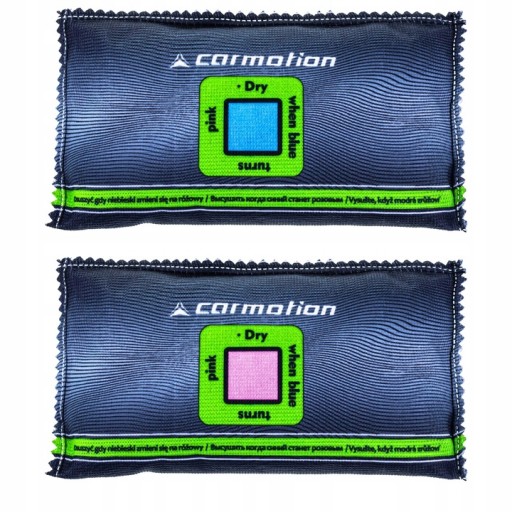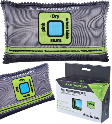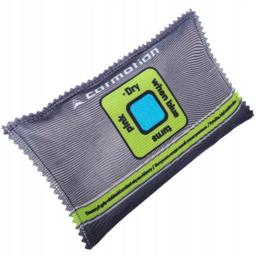 Inteligentny wskaźnik zawilgocenia zmieniając kolor na różowyinformuje, kiedy pochłoniacz jest pełen i należy go osuszyć. Można go osuszyć w mikrofalówce, piekarniku lub na kaloryferze.