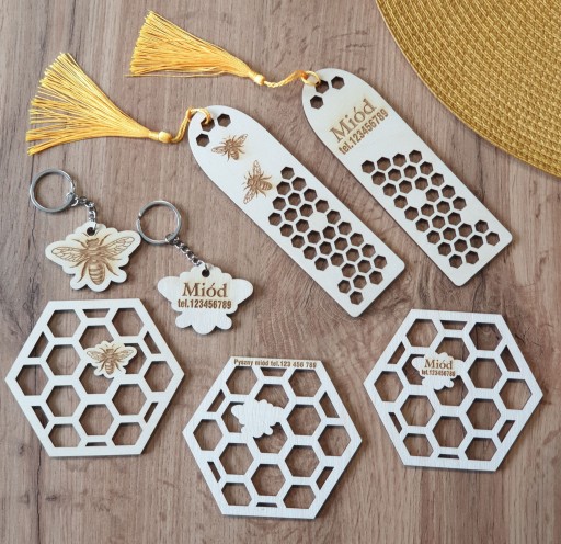 Podkładka pod kubek pszczoła plaster miodu pasieka miód Twój grawer REKLAMA