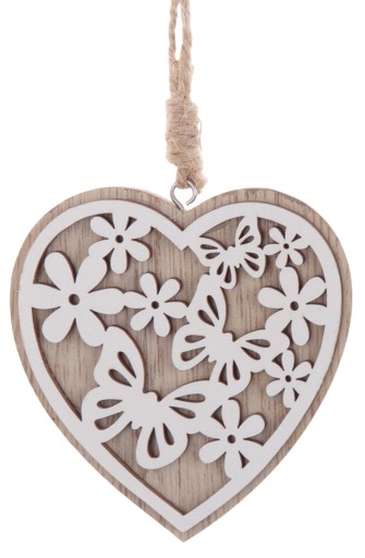 Oferta przedstawia serce drewniane na sznurku. Serduszko ze sklejki. Produkt doskonały do dekoracji.