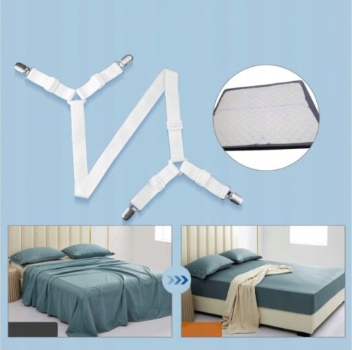 Paski do mocowania prześcieradła, regulowane prześcieradło Trójkątne elastyczne szelki Chwytaki Zapięcia Paski do mocowania Klips do prześcieradeł, pokrowców na materace, poduszek na sofę, poduszek