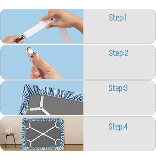 ✅️ - Ułatw sobie życie: współpracuje ze wszystkimi rodzajami pościeli, materacy, obrusów, pokrowców na deski do prasowania i pokrowców elastycznych. Zawsze utrzyma narożniki na swoim miejscu i ułatwi Ci życie.
