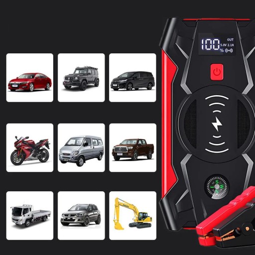 - 💪Może być używany jako awaryjny zasilacz rozruchowy dla pojazdów z silnikiem Diesla i benzyną 12 V, a także obsługuje bezprzewodowe ładowanie telefonów komórkowych.