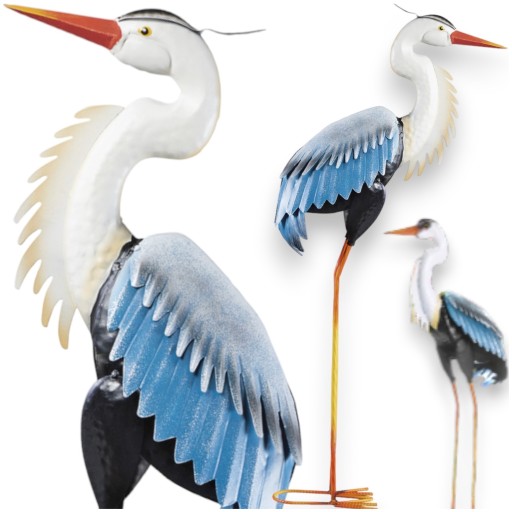 CZAPLA NIEBIESKOBIAŁA FIGURKA OZDOBA OGRODOWA PTAK FIGURA DEKORACYJNA 82 CM