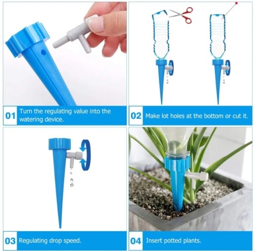 ✅Doskonały nawilżacz do roślin doniczkowych, który bezproblemowo łączy się z zwykłą butelką. Zapewnia ciągły dostęp do wody dla twoich roślin, nawet gdy nie ma cię przez dłuższy czas. Po prostu odetnij dolną część nawilżacza, aby uzyskać odpowiedni przepływ wody! Następnie wkręć butelkę wody do górnej części nawilżacza i umieść go w ziemi swojej doniczki.