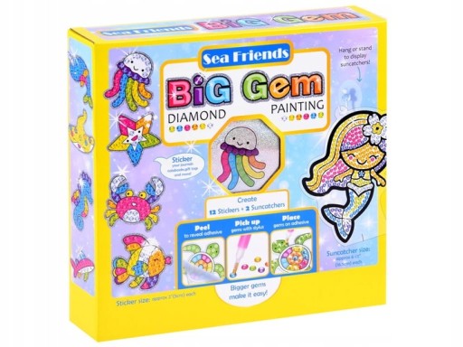 W zestawie znajdują się dwa szablony, podstawki i zawieszki, aż 1000 kolorowych diamencików, 12 holograficznych naklejek, tacka na diamenciki, specjalny długopis do wyklejania i wosk. To kompleksowe wyposażenie zapewnia godziny twórczej rozrywki.