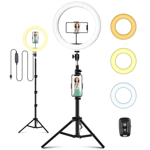 - 【Pilot zdalnego sterowania Bluetooth】 Światło do selfie z wrażliwym bezprzewodowym pilotem Bluetooth, kompatybilne z większością smartfonów z systemem iOS / Android. Możesz uwolnić swoje ręce do nagrywania wideo w YouTube, dla fotografa makro, do makijażu, selfie, streamowania, TikTok, Vlog itd. Uchwyć szczęśliwe chwile.