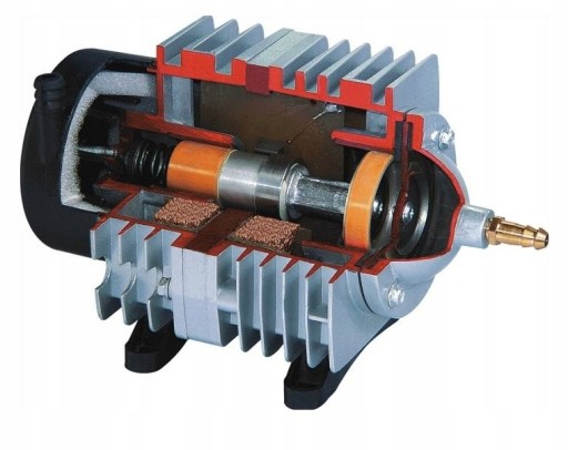 1️⃣Pompato urządzenie o wysokiej wydajności, które może pracować na głębokości do 2,5 metra. 2️⃣Korpus z radiatorem wykonany ze stopu aluminium ZL102, dzięki czemu urządzenie nie przegrzewa się i może pracować nieustannie bez wahań wydajności. 3️⃣Obudowa posiada uchwyt ułatwiający przenoszenie urządzenia. Przekładnia elektromagnetyczna zapewnia wstrzykiwanie powietrza przez bezpośredni ruch posuwisto-zwrotny i zwiększa racjonalność konstrukcji. 4️⃣Tłok i cylinder wykonane z termoplastycznego tworzywa zwiększającego żywotność pompy i obniżającego zużycie energii. 5️⃣Pompa elektromagnetyczna posiada jedno ujście powietrza, które z łatwością da się rozdzielić na kilka strumieni powietrznych za pomocą rozgałęziacza i wężyków podłączonych do dyfuzorów lub kamieni napowietrzających.