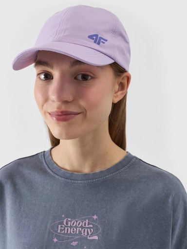 Wysokiej jakości czapka dziewczęca marki 4F z najnowszej kolekcji wiosna lato. Czapka charakteryzuje się nowoczesnym designem oraz świetną jakością wykonania. Posiada logo oraz zakrzywiony daszek, który chroni przed słońcem. Regulowany pasek z tyłu umożliwia indywidualne dopasowanie, dzięki czemu czapka nie spada z głowy. Czapka idealnie nada się na piesze, górskie wycieczki, na trening lub do codziennego użytku.