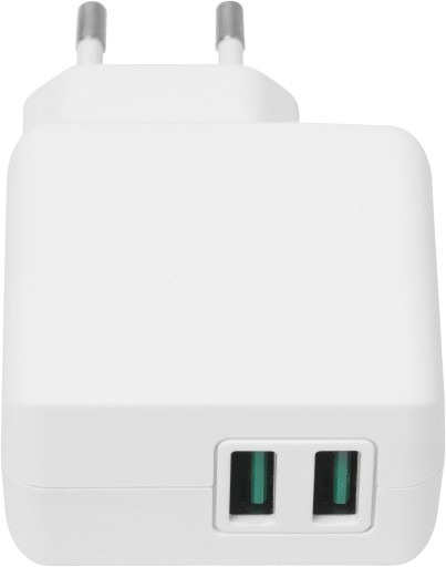 eSTUFF Home Charger EU 24W 2 x USB-A Input: 230V EU plug. Output: 5V/2,4A+ 5V/2,4A. 24Watt. White