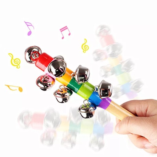- Metalowe dzwoneczki na drewnianym uchwycie wprowadzą dziecko w świat muzyki.