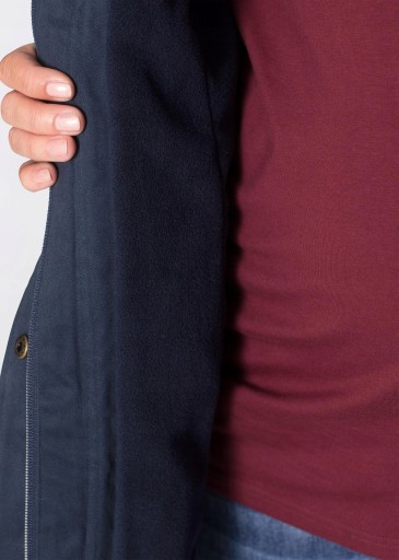 Skład materiału: więc bpc bonprix kolekcja materiał materiał wierzchni 97% bawełna 3% elastan; podszewka 100% poliester; podszewka w rękawach 100% poliester długość 96 cm (w rozm 42) długość rękawów długi rękaw kołnierz z kapturem zapięcie zapięcie już zamek kolor ciemnoniebieski