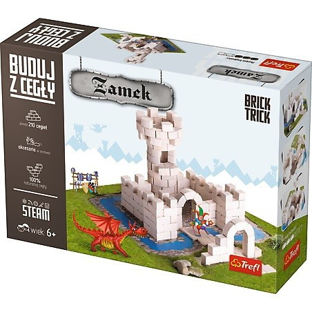 Wybuduj przepiękny Zamek niedaleko wodospadu, wykorzystując prawdziwe białe cegły i elementy dekoracyjne jak trawę czy krzew. Skorzystaj z dołączonych planów budowy lub użyj wyobraźni do stworzenia niepowtarzalnej konstrukcji. To nie koniec zabawy! Rozpuść konstrukcję w wodzie i buduj dalej, wykorzystując ponownie te same cegły! W opakowaniu znajdziesz: prawdziwe cegły, klej, elementy dekoracyjne, podstawkę, naklejkę i instrukcję. Dbamy o środowisko, dlatego zestaw zawiera aż 95% naturalnych składników! EKO klocki = zabawa murowana!