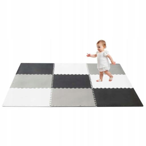 Mata piankowa to 9 dużych puzzli o wymiarze 60 x 60 cm, które możesz układać wraz ze swoim maluchem w dowolnej konfiguracji.