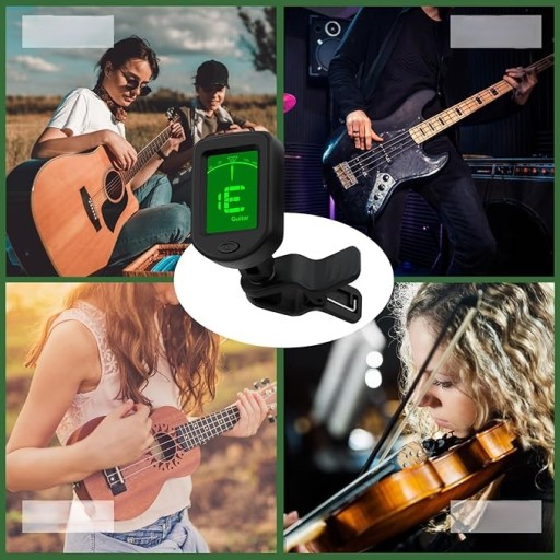 - ✔ 【Tuner Clip-on, który można obracać o 360°】 Ten tuner można obracać o 360 stopni i dowolnie zmieniać kąt. Kontrastowy tuner jest wyposażony w przejrzysty ekran LCD, który ma doskonały efekt wyświetlania. Klips o grubości 2,5 cm może zamocować tuner na dowolnej części instrumentu i pod dowolnym kątem.