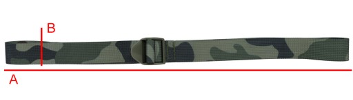Trok o długości 130 cm wykonany został z odpornego na przetarcia nylonu oraz zakończony wytrzymałą klamrą zaciskową z regulacją. Szerokość 25 mm pozwala na troczenie paska do taśm w standardzie MOLLE / PALS.