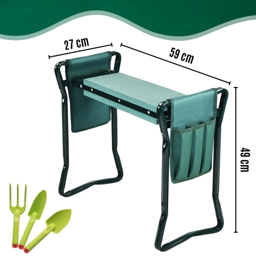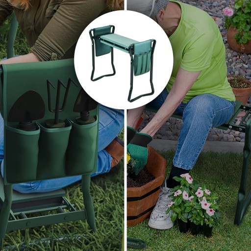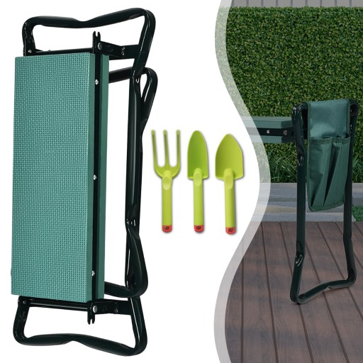 MEGA ZESTAW TABORET SKŁADANY + AŻ 3 AKCESORIA DO PRAC OGRODOWYCH