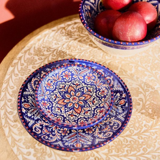 Dodaj wielobarwny akcent na swój stół wraz z pięknym talerzem SANDOS. Jego kompaktowy rozmiar sprawia, że świetnie nadaje się na małe przekąski podczas przyjęć lub jako dodatek do większego zestawu zastawy stołowej. Głębokie kolory oraz wyjątkowy wzór będą stanowić doskonałe tło dla prezentowanych na nim dań. Jest to również świetna propozycja na prezent, szczególnie dla miłośników pięknych naczyń.