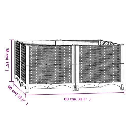 vidaXL Кашпо для приподнятой грядки, 80x80x38 см, полипропилен